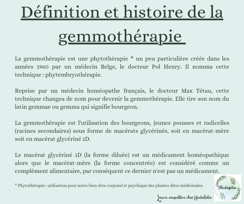 Reprise par un médecin homéopathe français, le docteur Max Tétau, cette technique changea de nom pour devenir la gemmothérapie. Elle tire son nom du latin gemmae ou gemma qui signifie bourgeon.